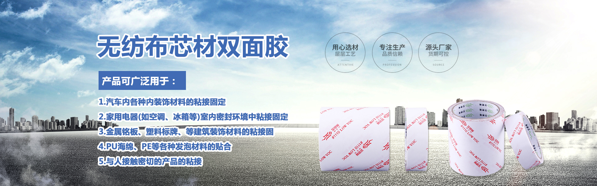 专业生产超薄防水泡棉胶带、高强度PE泡棉胶带,亚克力双面带、 PET/PP胶带、低VOC无纺布双面胶、导热胶带等高性能工业胶带, 粘接技术解决方案供应商